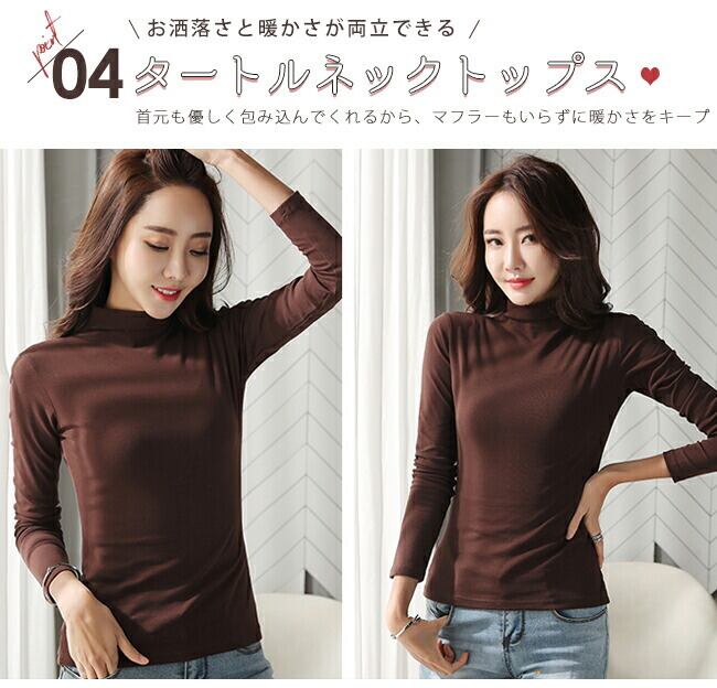 内側は裏起毛仕様で、肌に触れた瞬間からやさしいぬくもりを感じられます。秋冬の冷えやすい季節でも快適に着用でき、インナーとしてもトップスとしても活躍する一枚です。