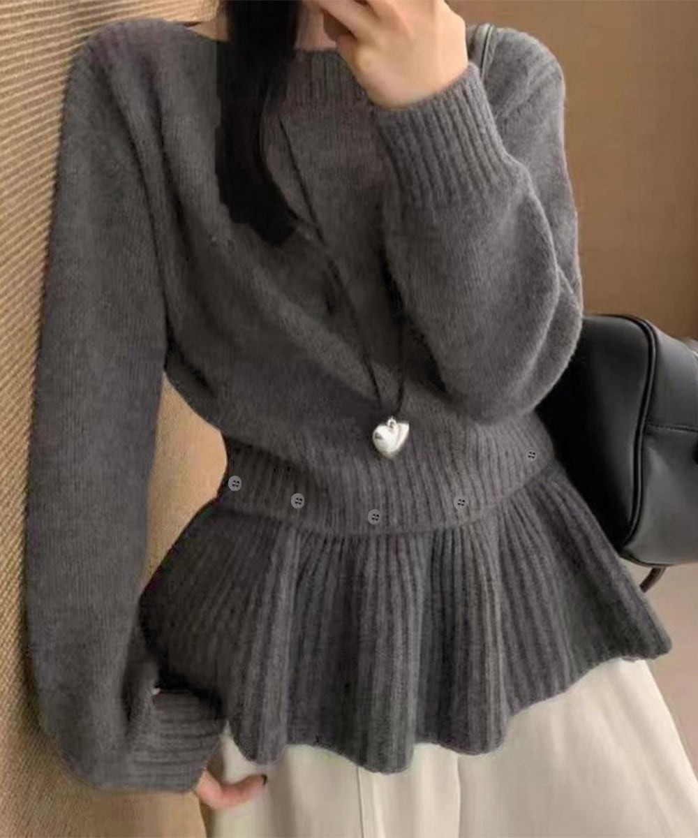 \春秋冬新作!/ ニットトップス 韓国風ペプラムニット