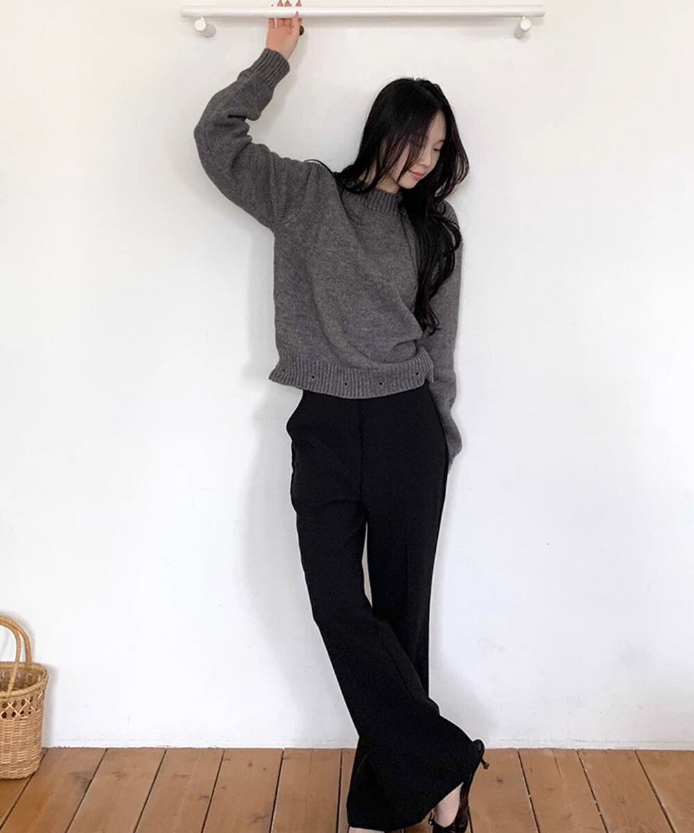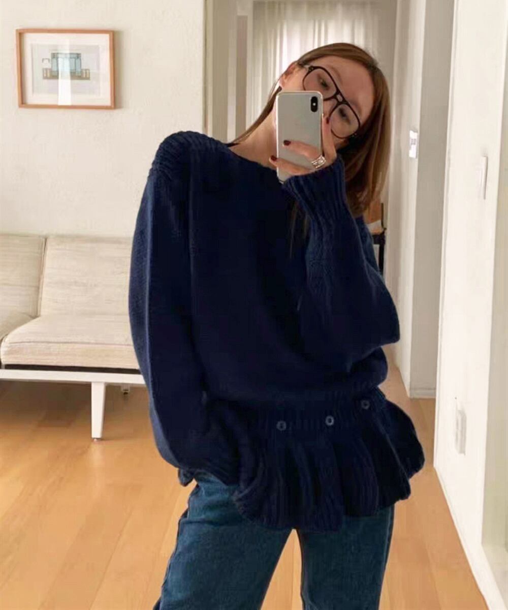 かわいらしさと女性らしさを兼ね備えたペプラムニットトップスは、どのアイテムとも組み合わせやすく、スタイリッシュな印象を与える一着です。クルーネックのシンプルデザインが、インナーとしても単品使いとしても大変便利。春秋冬と長いシーズンで活躍できる、ワードローブにぜひ加えたいアイテムです!