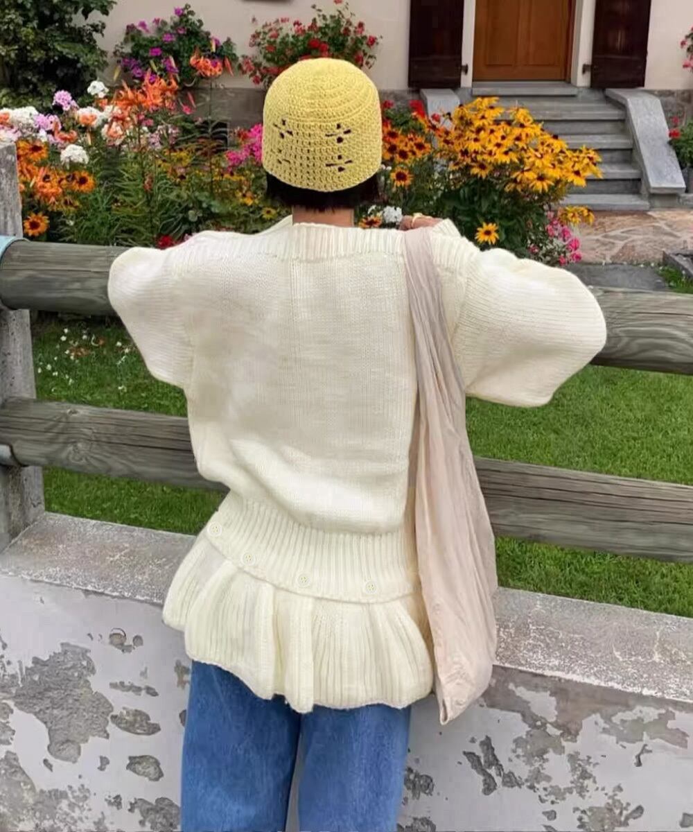 秋冬はもちろん、初春まで長く使える裾ペプラム仕様のニットトップス。