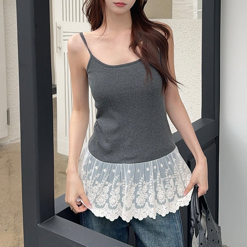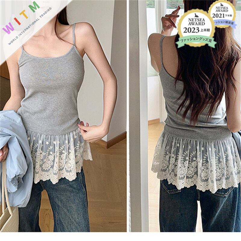 2026春夏新作 キャミソール カップ付きインナー レーストリム 重ね着 バストパット付き レディース | Fashionshop Kuuu571 |StylishでおしゃれなFashion好きな人達へ