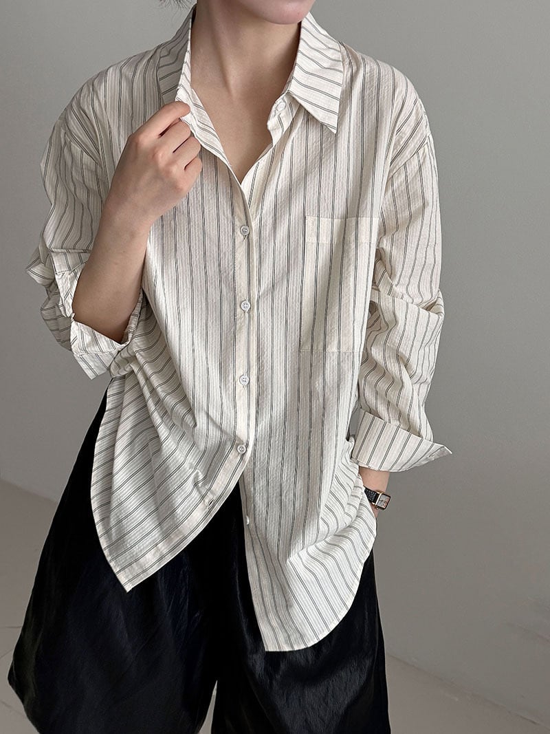 このブラウスは、デニムやスカートはもちろん、ワイドパンツとも相性が抜群です。ビジネスシーンはもちろん、カジュアルなお出かけやデートスタイルにもぴったりのアイテム。これ一枚で、トレンドを意識した多様なコーディネートが楽しめます!