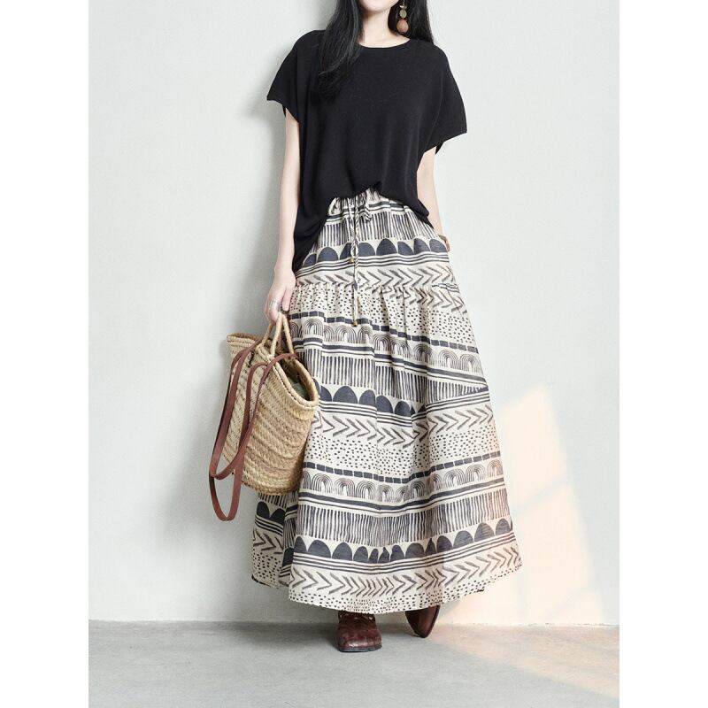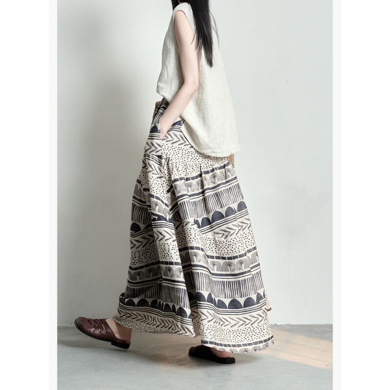 夏新作 スカート ロングスカート ボヘミアン風 体型カバー 綿麻 カジュアル 着回し