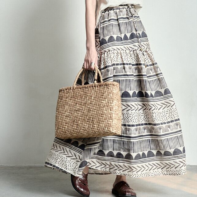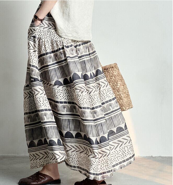 \2026夏新作!/ ロングスカート ボヘミアン風 体型カバー 綿麻 カジュアル