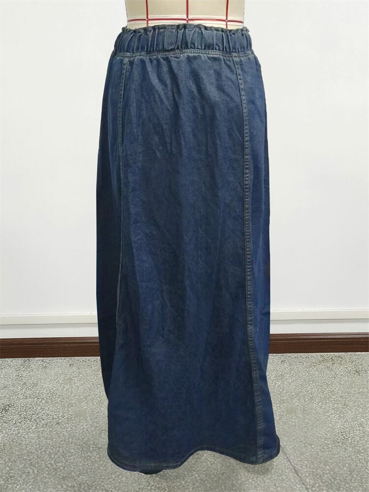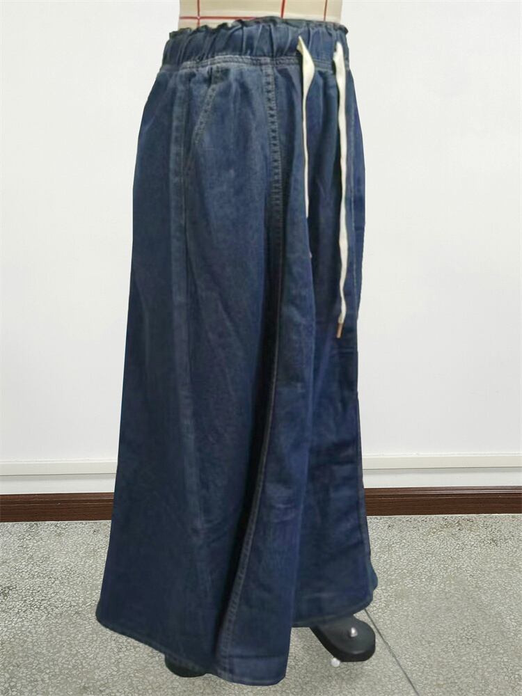 エストが楽なドローコード入りロングスカート 柔らかめのデニムで動きやすい