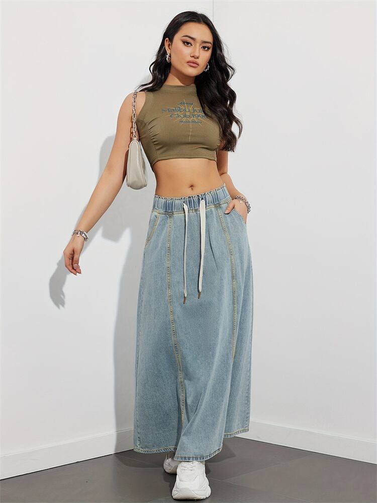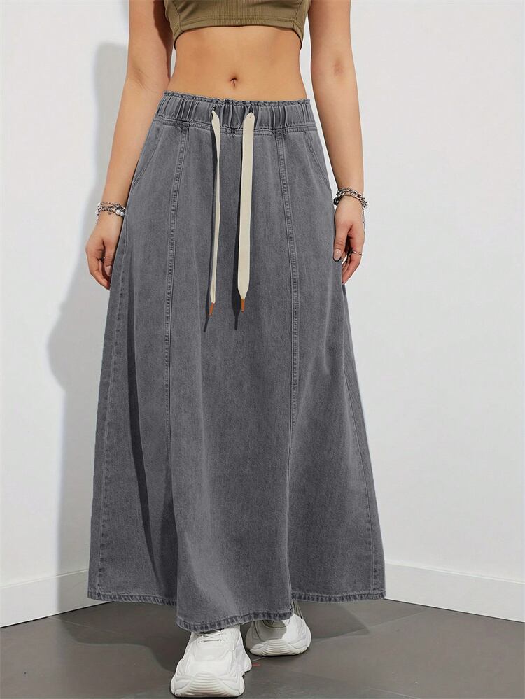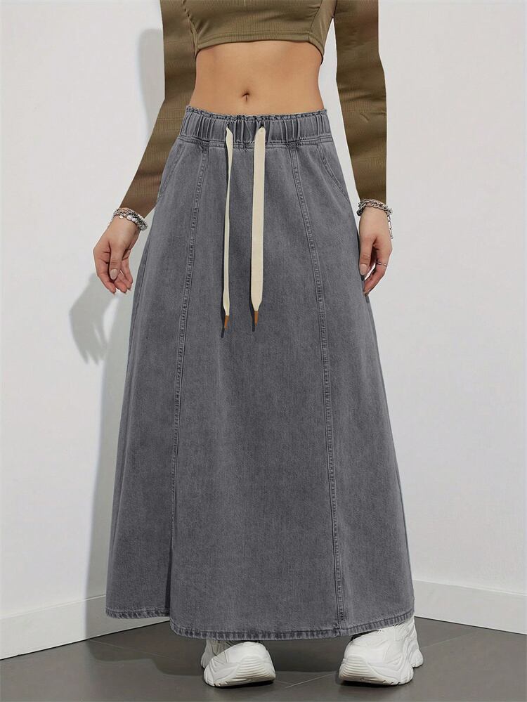 このエストが楽なドローコード入りロングスカートは、春夏のファッションを楽しむ全ての女性にマッチするアイテムです。柔らかめのデニム素材を使用しており、動きやすさを実現した一着。ドローコードのデザインがウエストを調整でき、自分のスタイルにぴったり合わせて着こなすことができるのが魅力です!