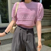 ・透け感のある爽やかな透かし編み半袖ニットです。 ・タンクトップやキャミソールなどに重ねて着るだけで、今年っぽいレイヤードスタイルを楽しめます。