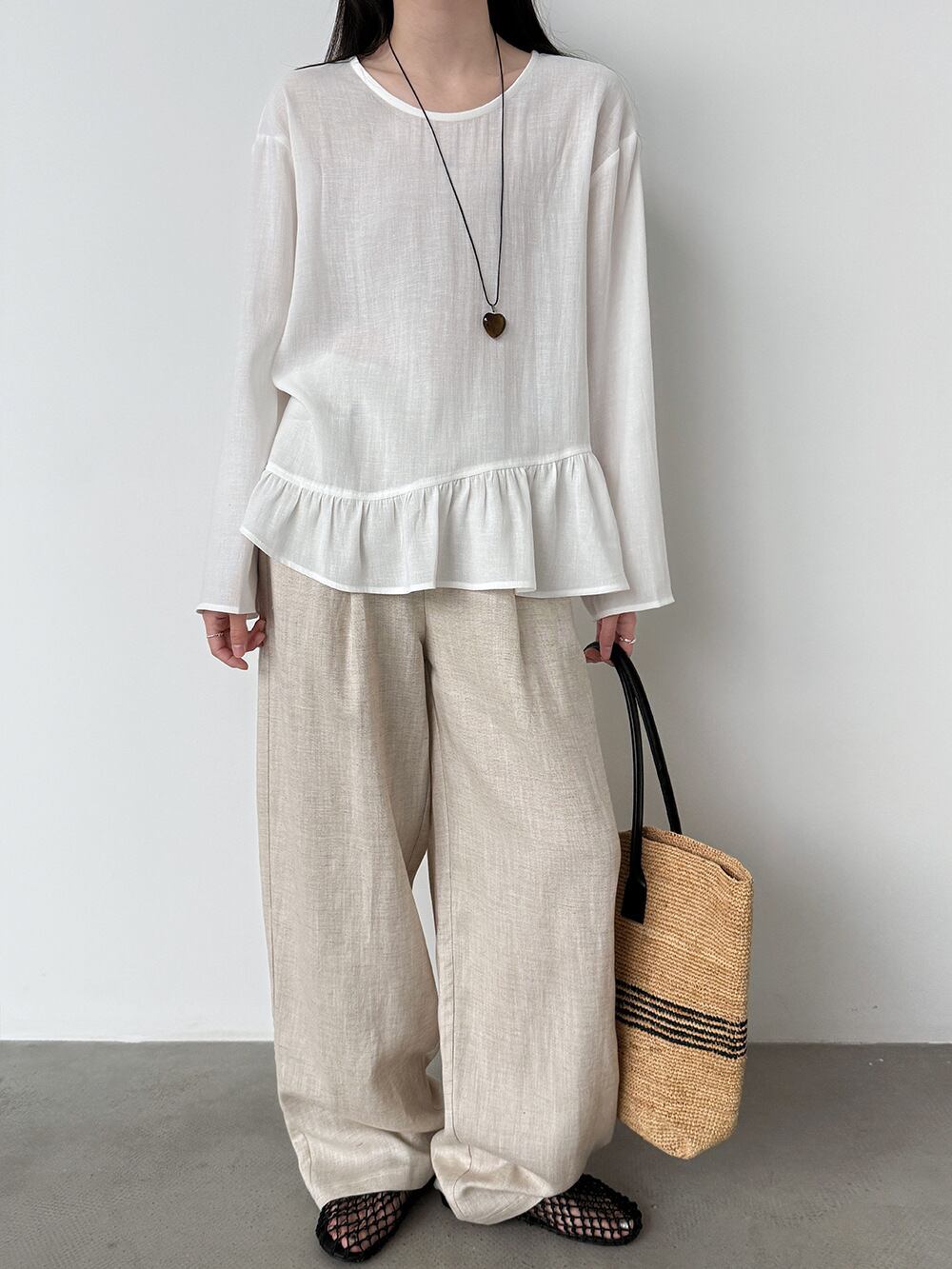 トップス レディース プルオーバー シャツ 3色 長袖 通勤 フレア 韓国風 2026春夏新作