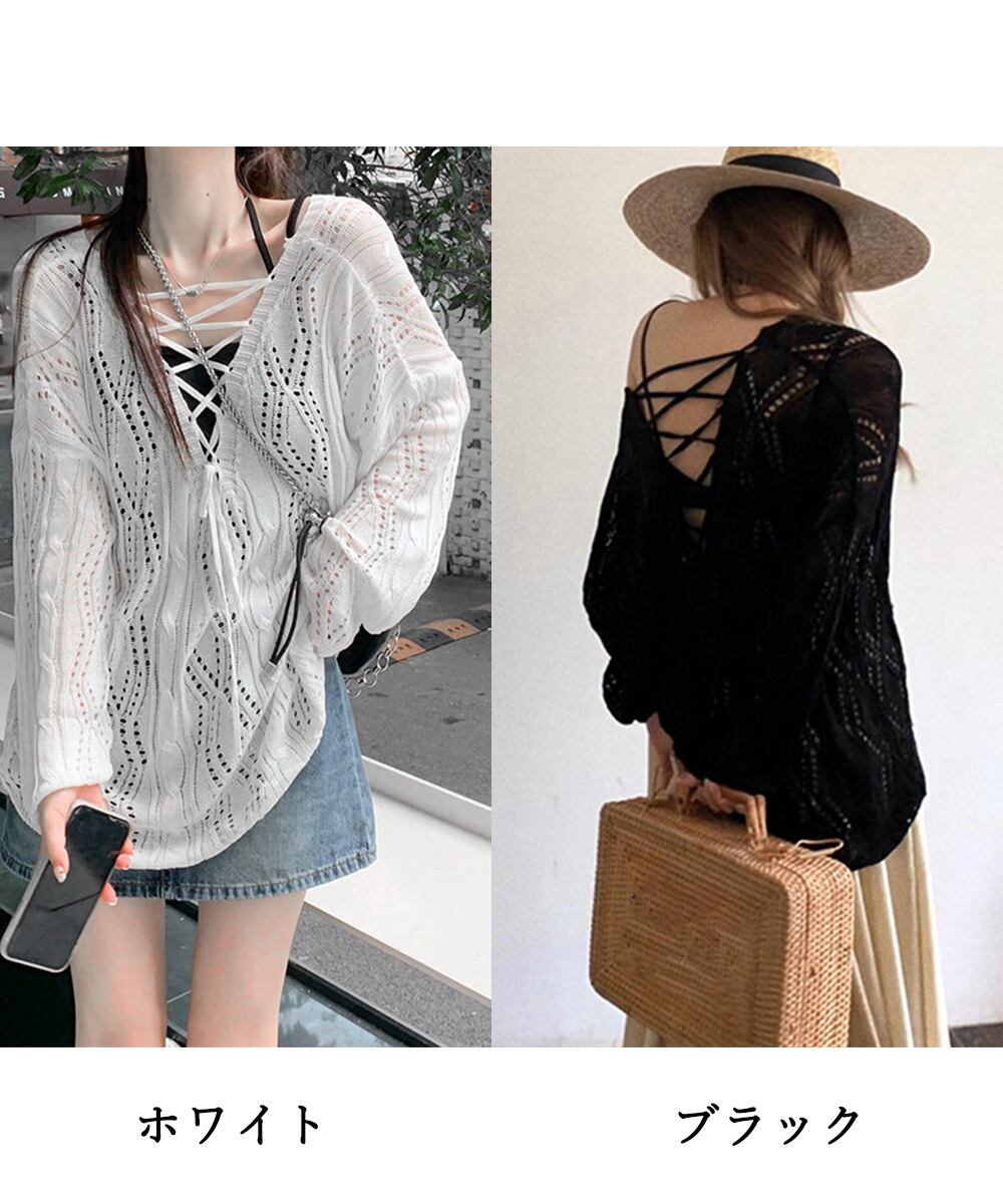 \2026春夏新作!/ 透かし編み ニットトップス レースアップ
