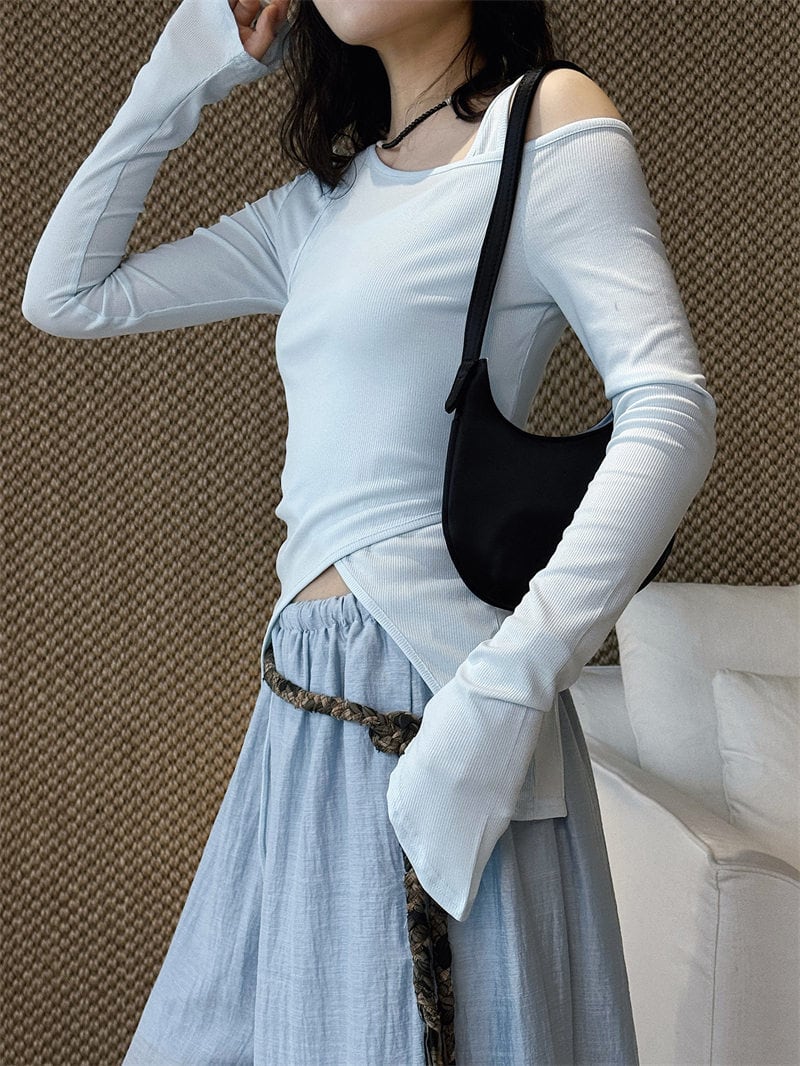 トップス レディース プルオーバー Tシャツ 2色 無地 不規則 韓国風 2026春夏新作
