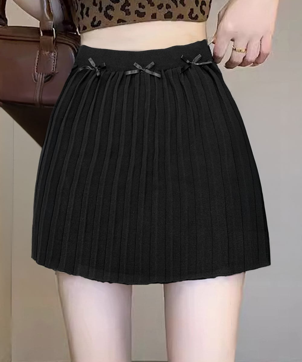 ウエスト部分に小さなリボンが付いたミニプリーツスカート