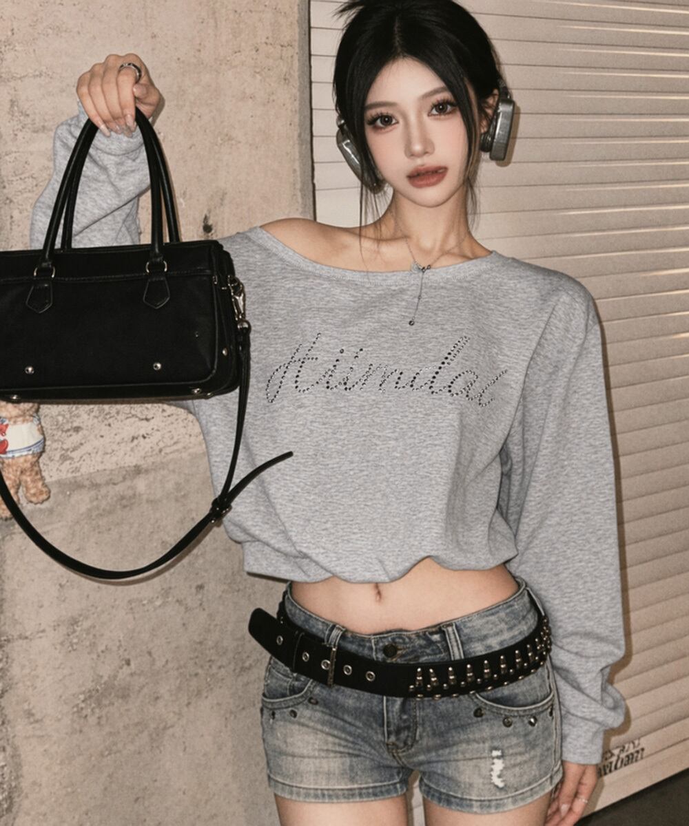 このビジューロゴオフショルスウェットトップスは、春秋のスタイルをぐっと引き立ててくれるアイテムです。