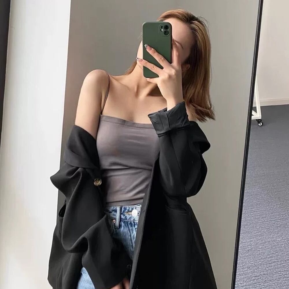 見せインナー重ね着/ショート丈トップス/へそ出しキャミ夏服