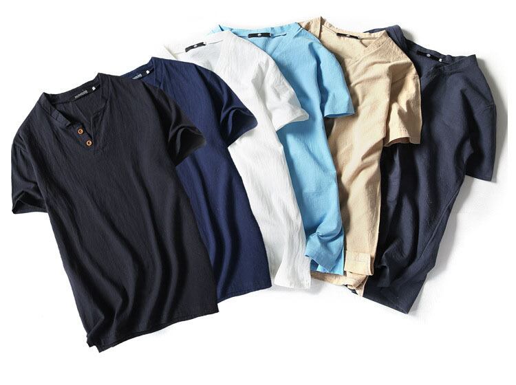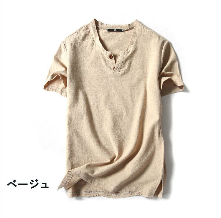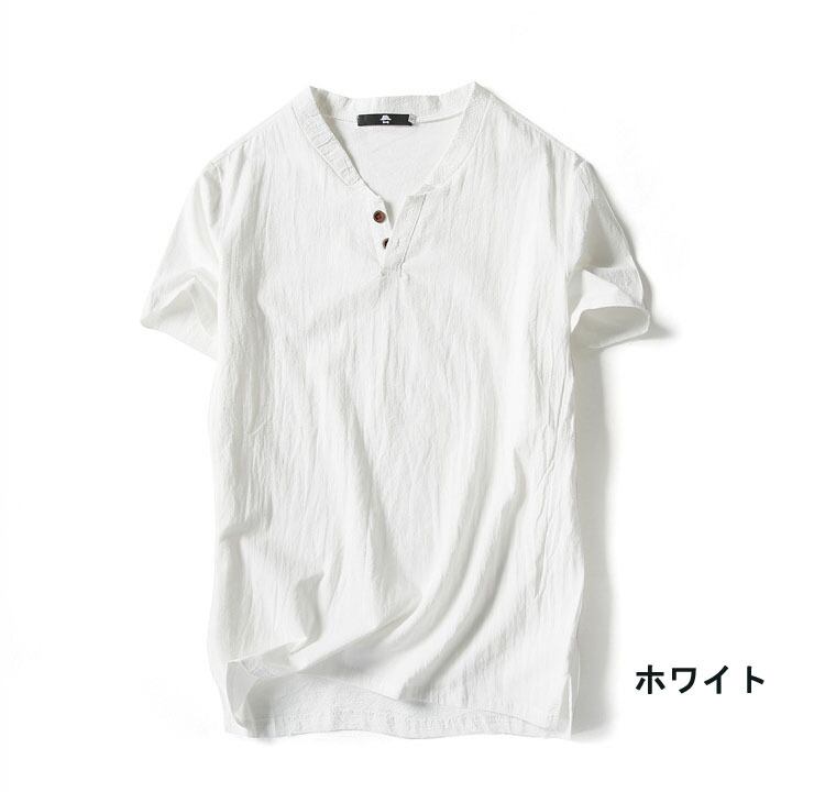 メンズTシャツ 半袖Tシャツ Vネック トップス 紳士服 ボタン付き 白 黒 ロングT カットソー カジュアル