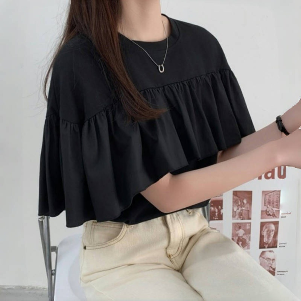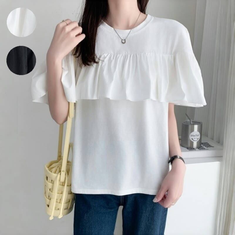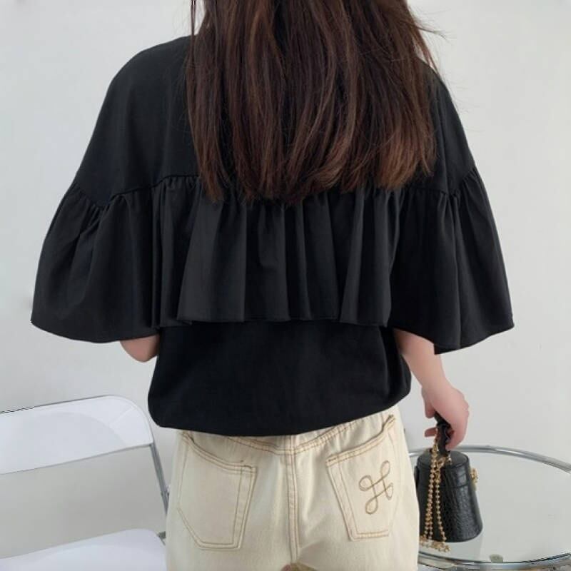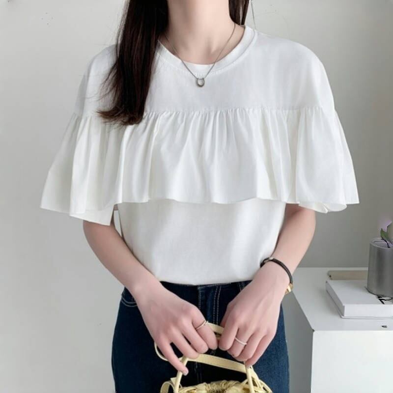 2025年夏新作 tシャツ Tシャツ レディース トップス ラウンドネック フレア カジュアル シンプル | Fashionshop Kuuu571 |StylishでおしゃれなFashion好きな人達へ