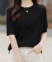 着やせ トップス/サマーセーターくろ/ニットソー 通勤服