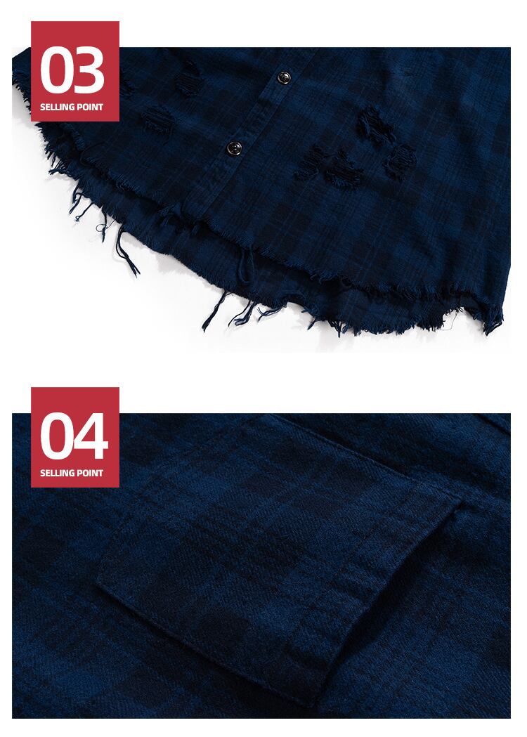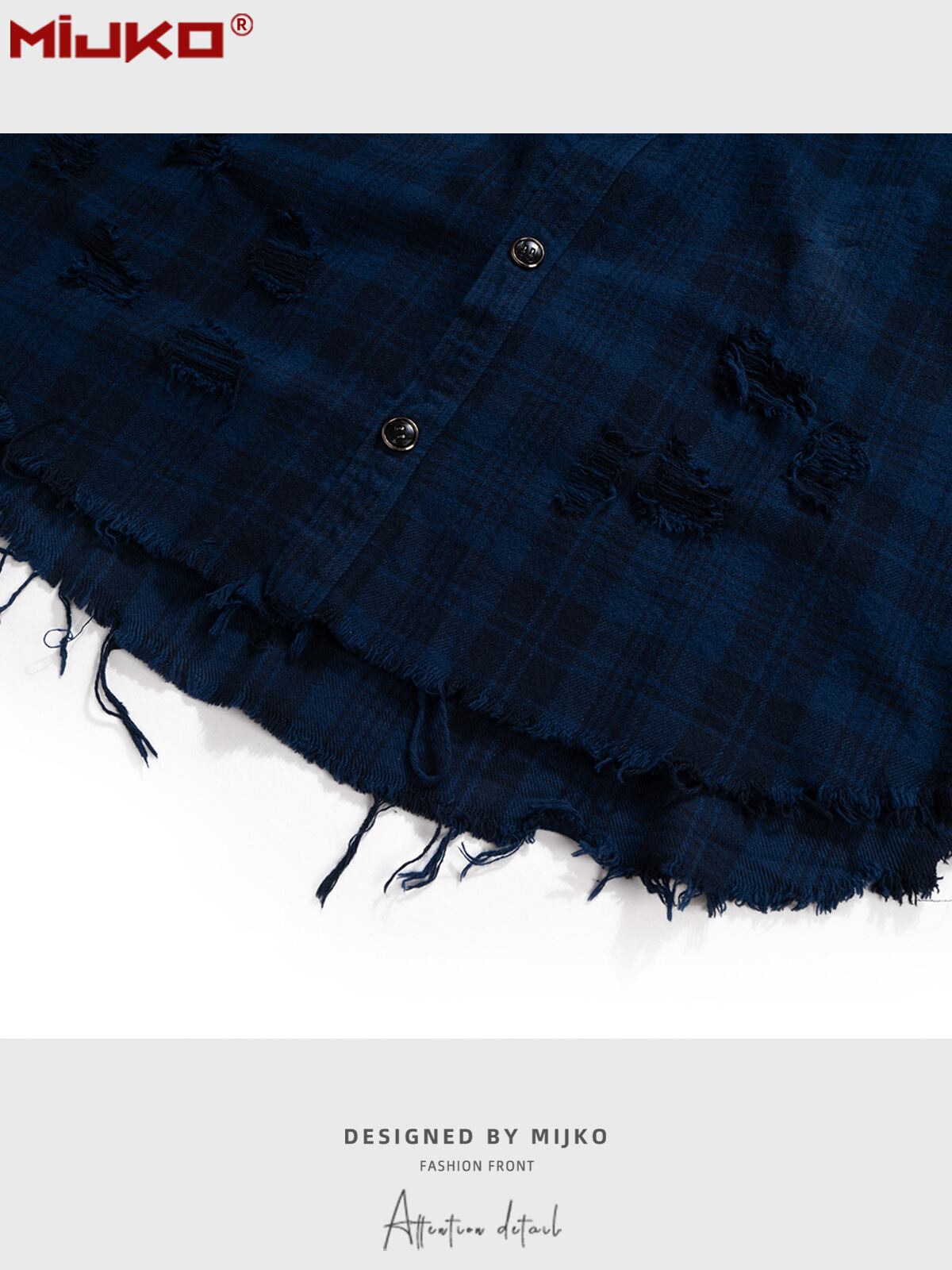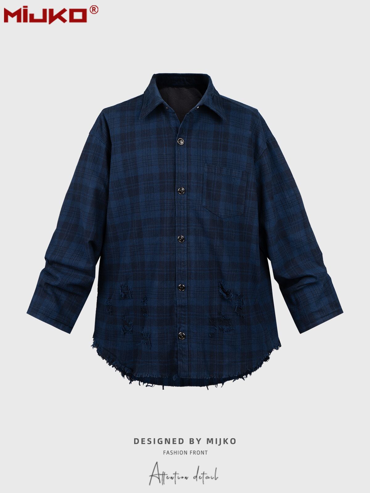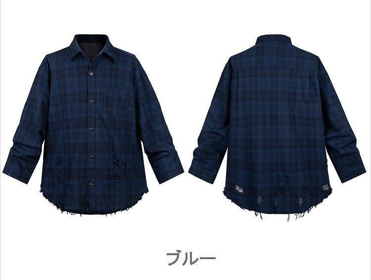 メンズ ダメージ加工 チェック柄 長袖シャツ 男女兼用 ストリート系 アウター 春秋 2024新作★ | Fashionshop Kuuu571 |StylishでおしゃれなFashion好きな人達へ