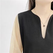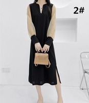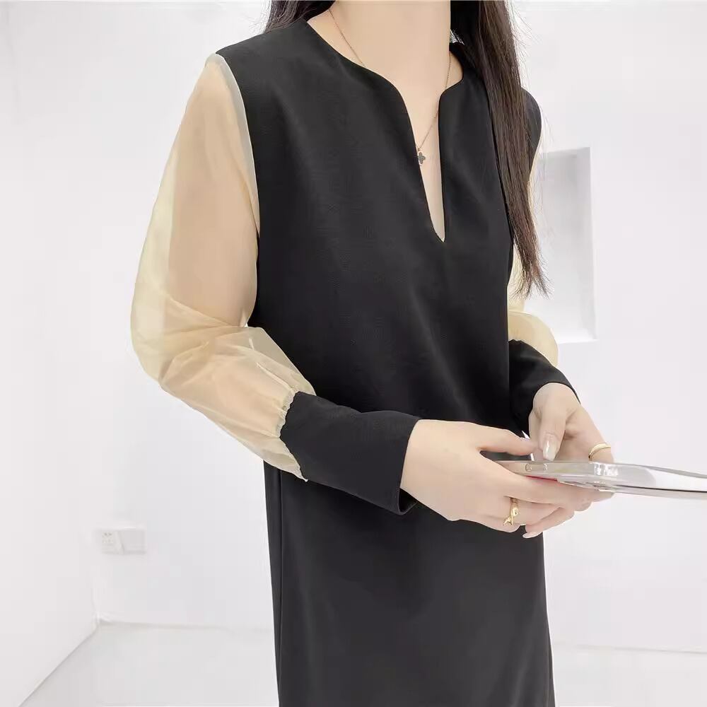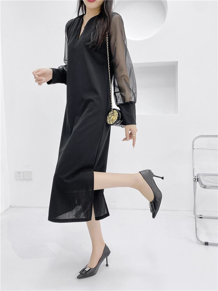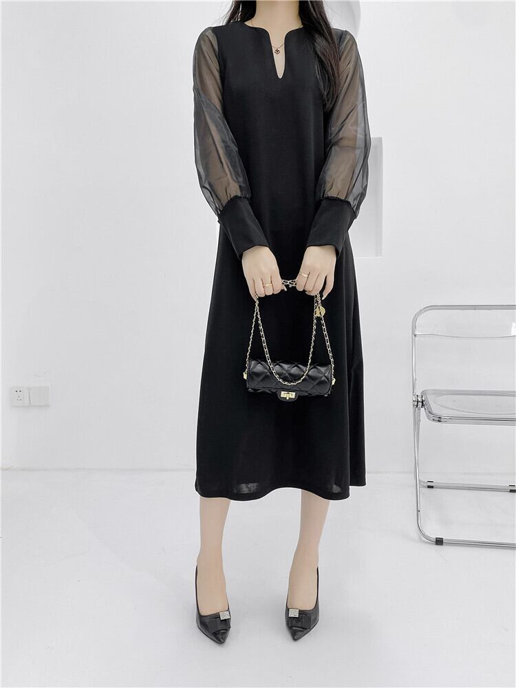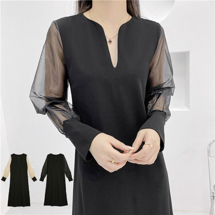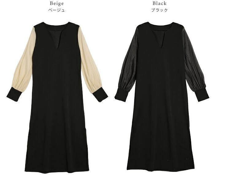 人気新作 ワンピース ロング丈ワンピ レディース 異素材 Vネック 長袖ワンピース きれいめ おしゃれ | Fashionshop Kuuu571 |StylishでおしゃれなFashion好きな人達へ