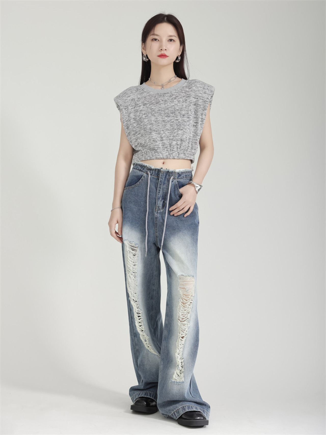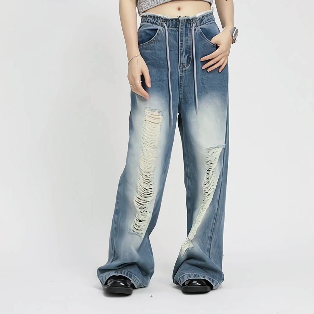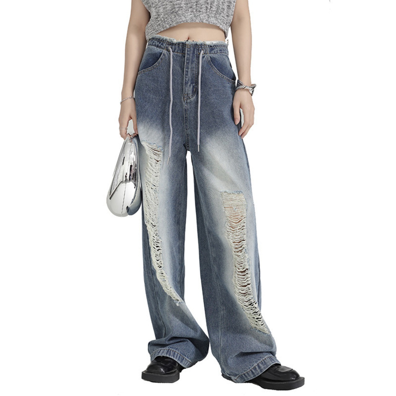 ファッションの新定番、レディースダメージジーンズ バギーパンツが登場!ヴィンテージ感溢れるデザインが魅力で、カジュアルなスタイルにはもちろん、ちょっとしたお出かけにもぴったり。ゆったりとしたシルエットで、快適な着心地を実現しました。