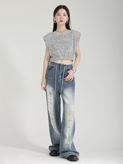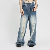 特にダメージ加工が施されているので、こなれた印象を与えることができます。また、どなたでも挑戦しやすいウエストデザインで、体型を気にすることなくリラックスして着用できます。おしゃれを楽しみたいとき、気軽に選べるアイテムです。