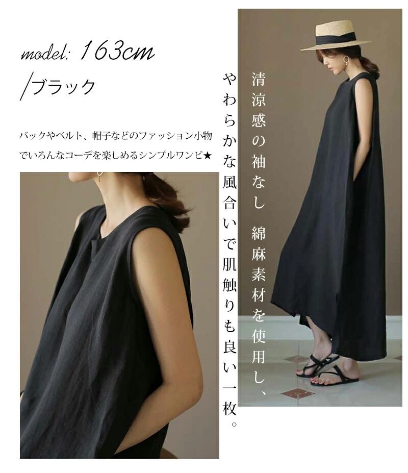 2024年新作 ワンピース レディース ロング丈ワンピース 韓国風 ノースリーブ 体型カバー カジュアル | Fashionshop Kuuu571 |StylishでおしゃれなFashion好きな人達へ