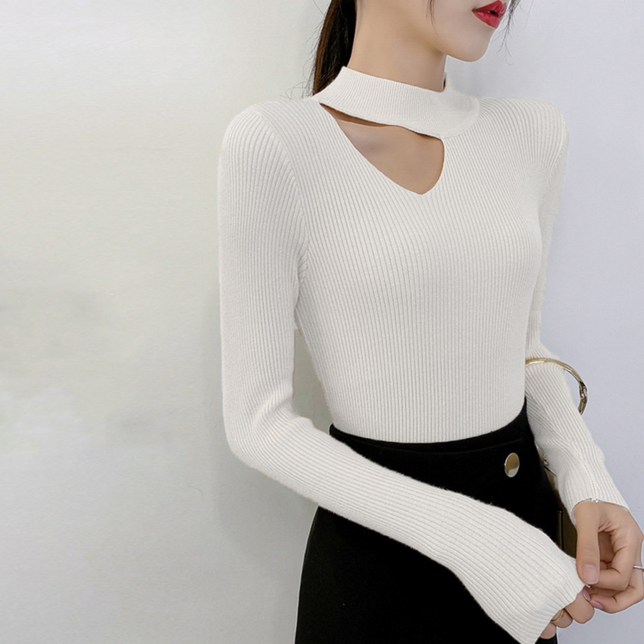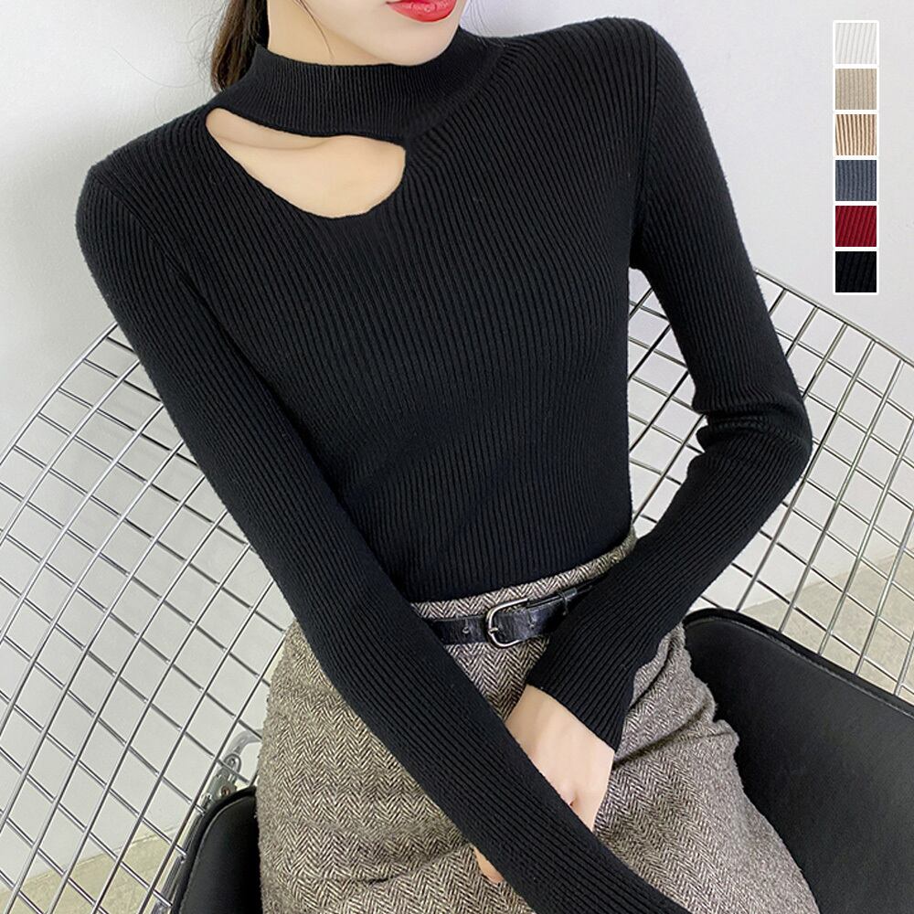 デコルテカットがセクシーなリブニットトップス