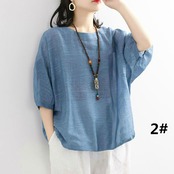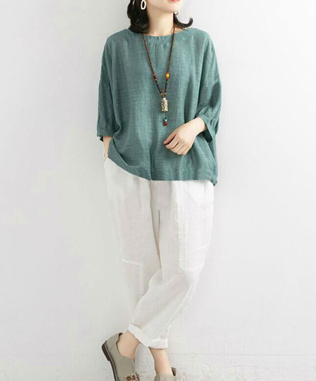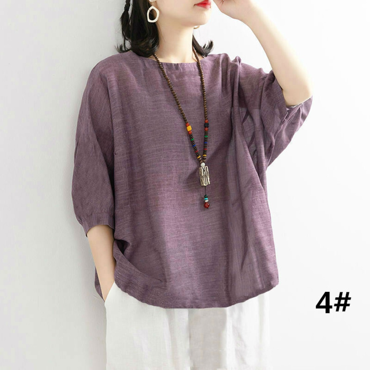 ブラウス シャツ レディース トップス 2024年新作 綿麻シャツ ラウンドネック レトロ tシャツ カジュアル | Fashionshop Kuuu571 |StylishでおしゃれなFashion好きな人達へ