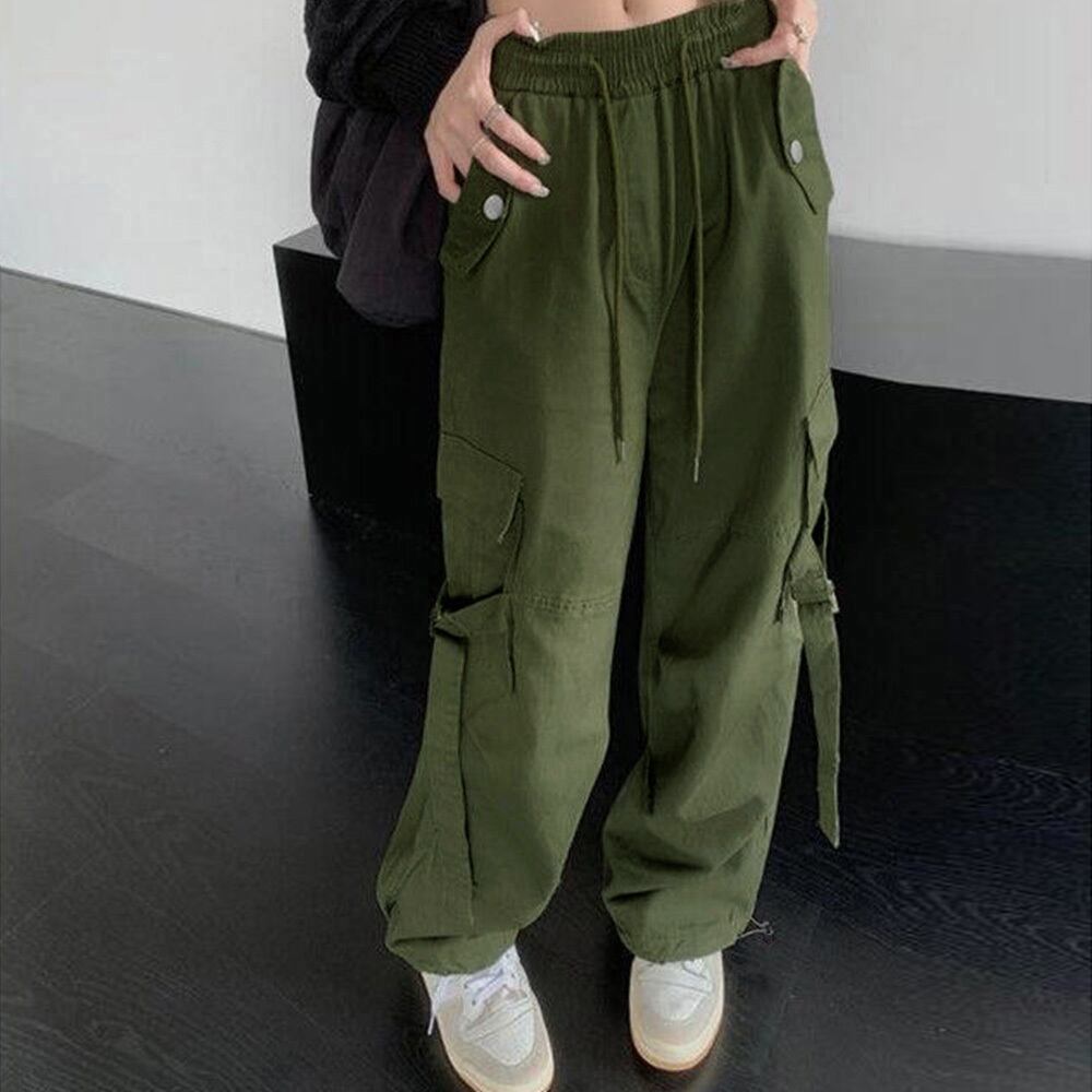 レトロな雰囲気を演出し、トレンディなスタイリングにピッタリのハイウエストワイドカーゴパンツ