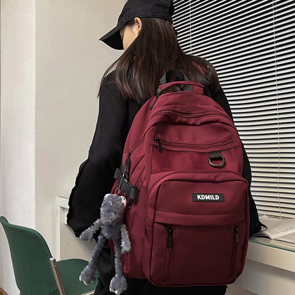 ロゴ 黒リュック 修学旅行鞄大きめ 多収納リュック韓国