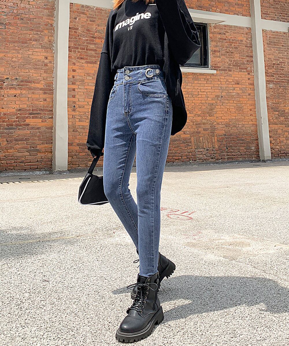 スタイルの良いジーンズをカッコよく履きこなすデニムスキニーパンツ