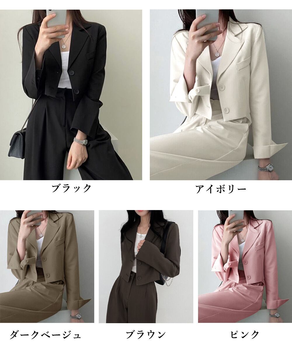 クロップドジャケット スーツワイドパンツ 春秋セットアップ オフィスカジュアル 20代30代40代 おしゃれフォーマル服