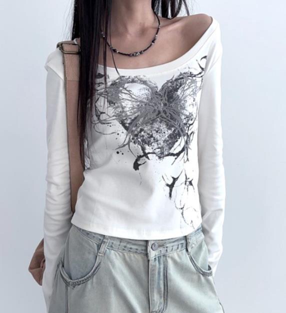 2024秋冬新作 レディース 女 長袖 丸首 プリント Tシャツ トップス インナー | Fashionshop Kuuu571 |StylishでおしゃれなFashion好きな人達へ