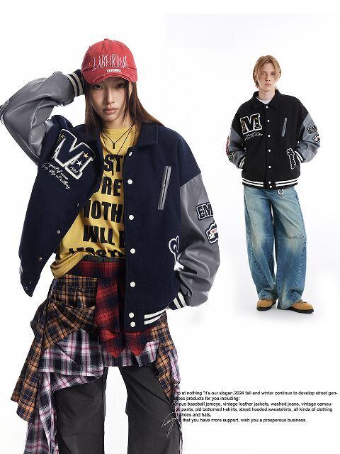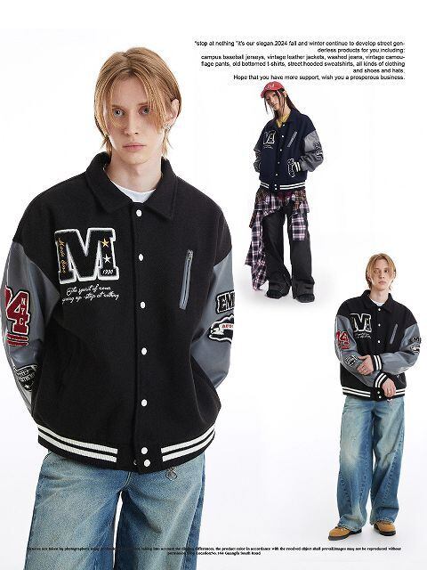 メンズ 刺繍入り PU袖 スタジャン 男女兼用 ストリート系 ジャケット 秋冬 2024新作★全2色 | Fashionshop Kuuu571 |StylishでおしゃれなFashion好きな人達へ