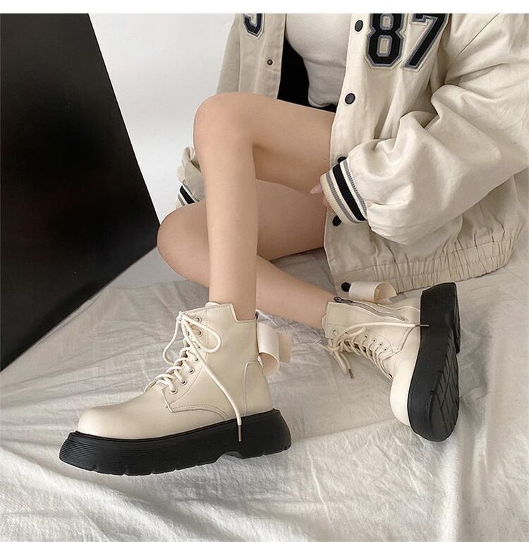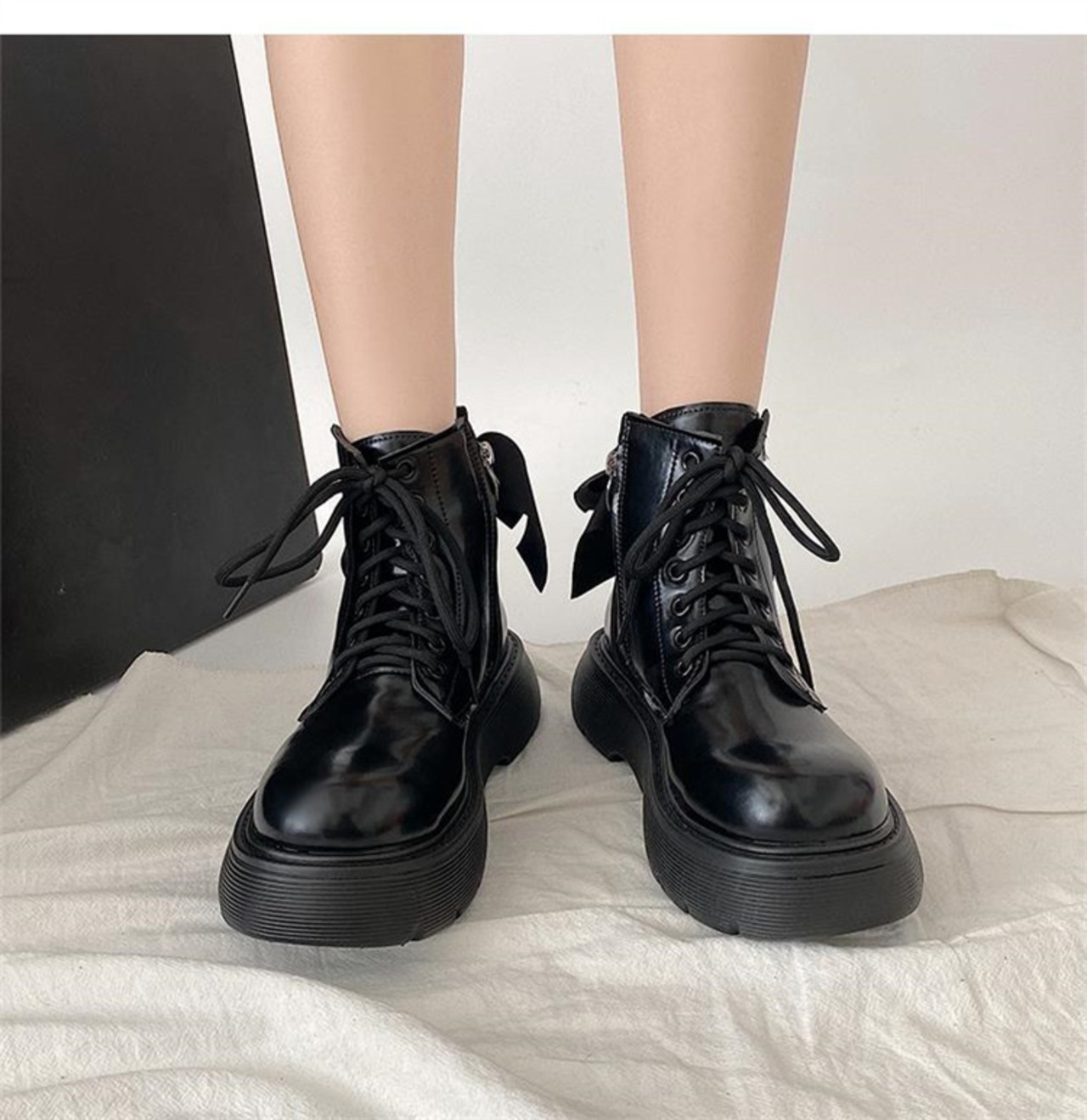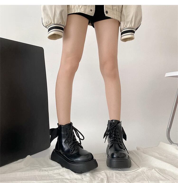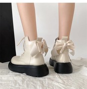 ■注目のデザイン!早い者勝ちのシングルブーツが登場です!厚底デザインに蝶ネクタイのアクセントが特徴で、スタイリッシュな足元を演出します。
