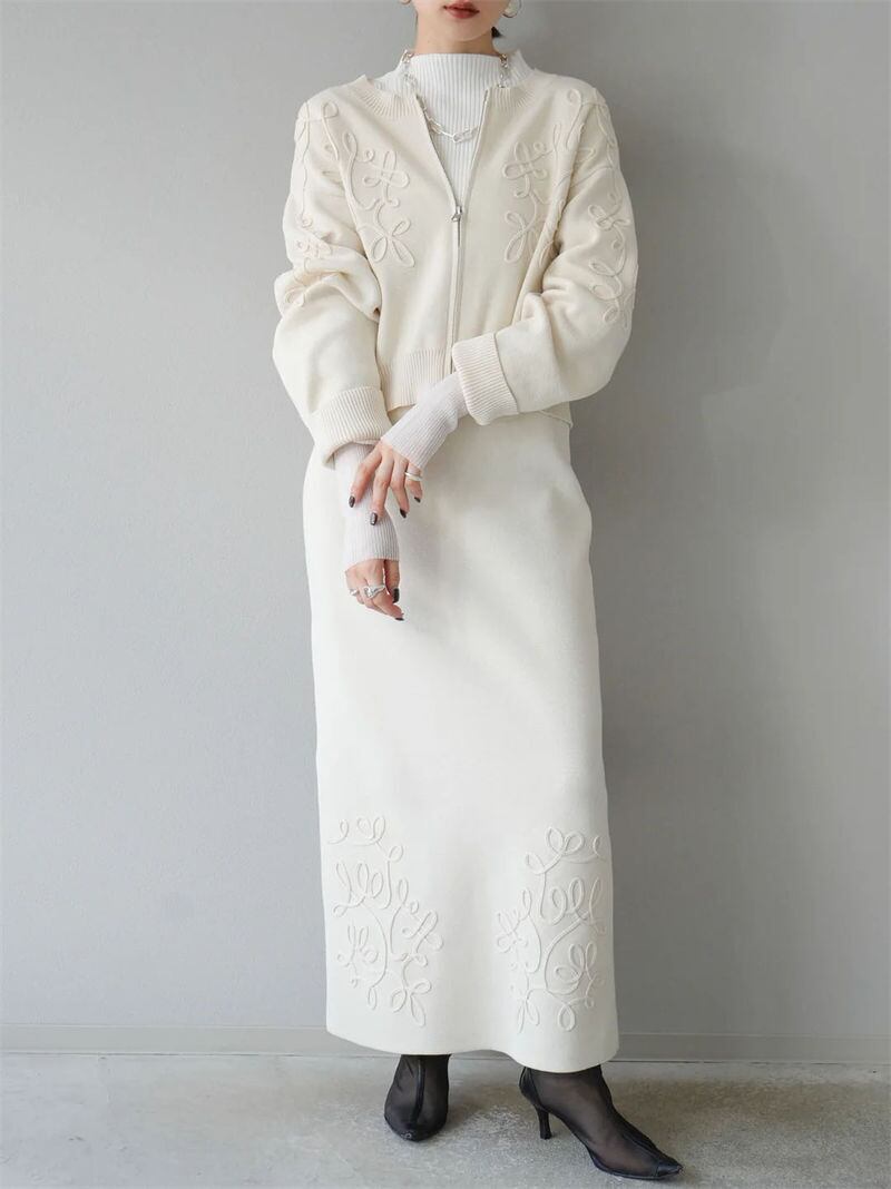 センス溢れるデザインで、コーディネートが簡単に決まる、春秋にもぴったりのニットセットアップ。柔らかい厚手のニット素材を使用しているため、肌触りも良く、着心地抜群です。おしゃれでありながら、リラックスした雰囲気が楽しめる一品です。