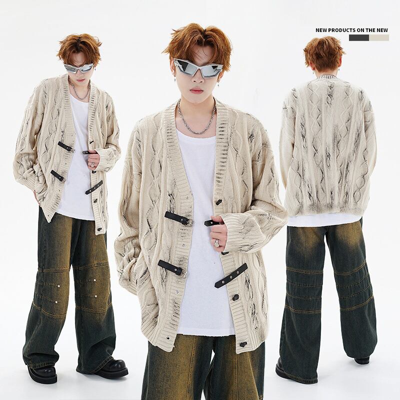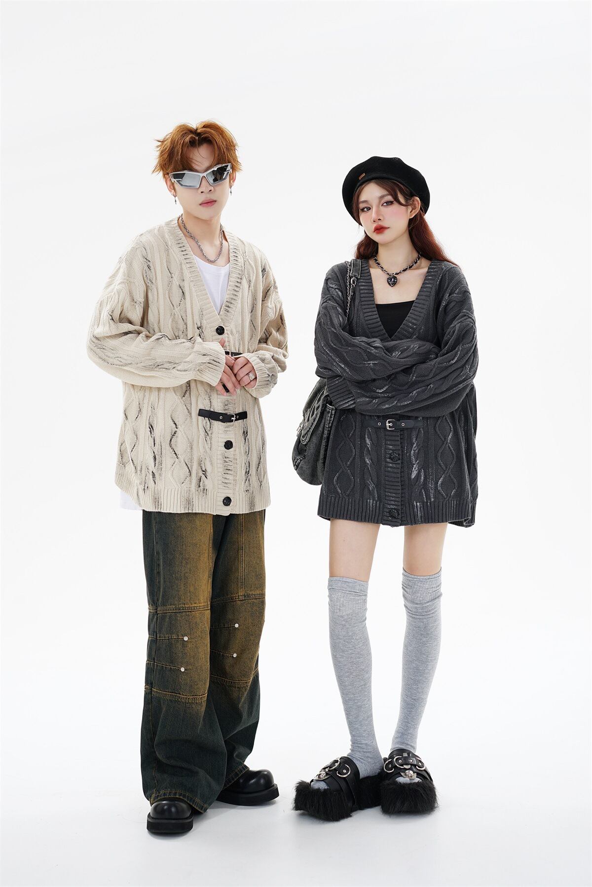 メンズ ビンテージ風 ニットカーディガン 男女兼用 ストリート系 アウター 秋冬 2024新作★全2色 | Fashionshop Kuuu571 |StylishでおしゃれなFashion好きな人達へ