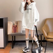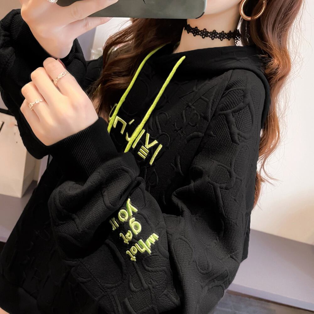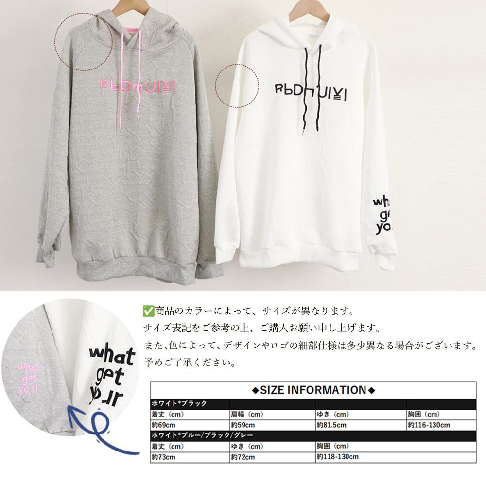立体感ある同色のエンボス加工ロゴがアクセントになったオーバーサイズパーカー
