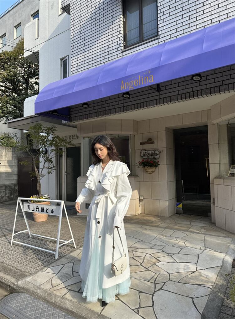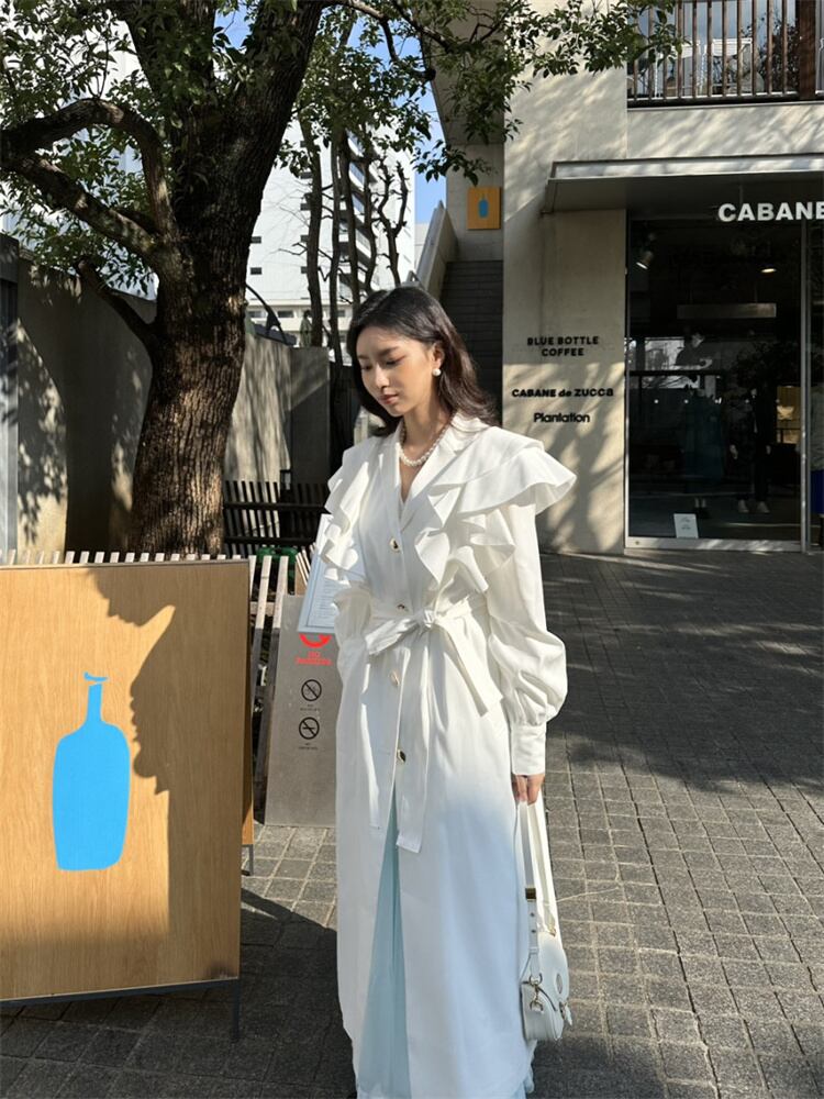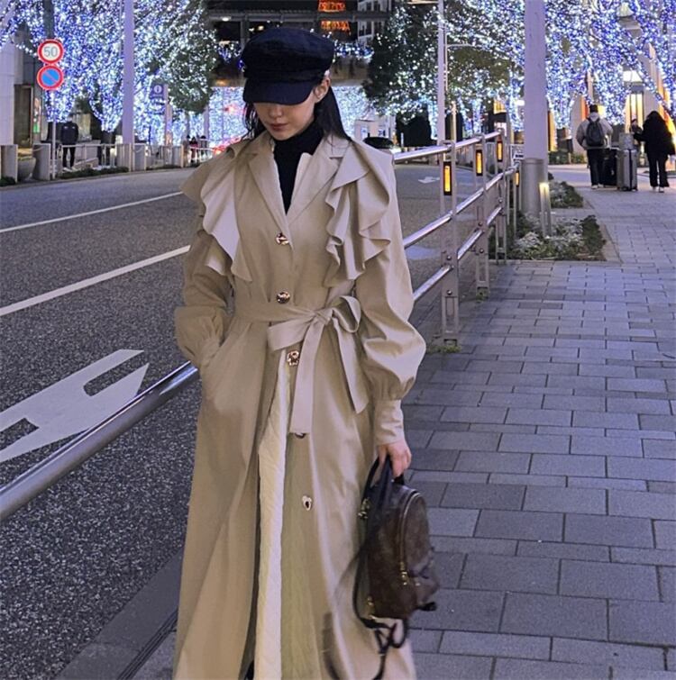 柔らかな雰囲気 トレンチコート ダスターコート スーツ襟 受け取って腰 縫付 フリル ロング 快適である | Fashionshop Kuuu571 |StylishでおしゃれなFashion好きな人達へ