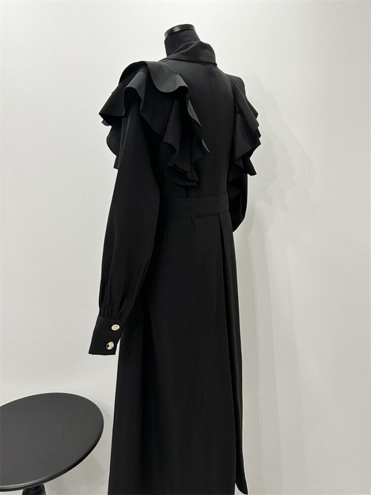 柔らかな雰囲気のトレンチコートが、あなたのスタイルを魅力的に引き立てます!スーツ襟デザインとフリルのディテールが絶妙に調和し、日常使いから特別なシーンまで幅広くお楽しみいただけるアイテムです。ゆったりとしたシルエットで快適さを追求しつつ、美しいラインを描くロングサイズが特徴です