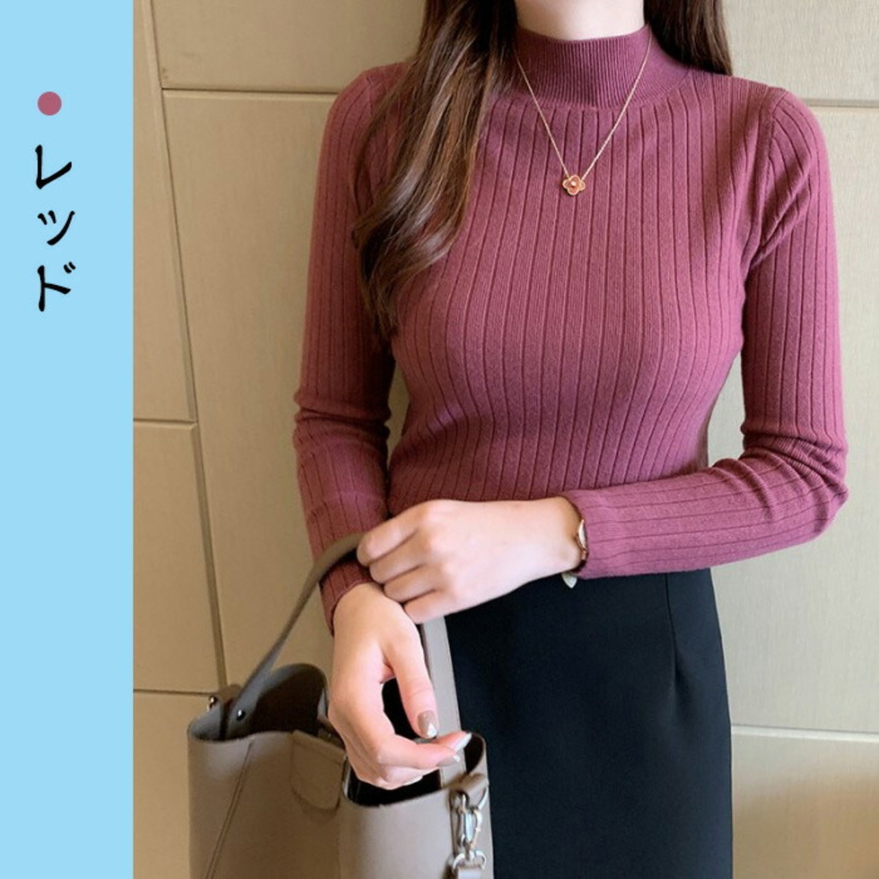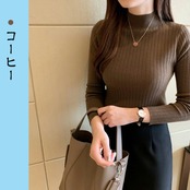 【大人気のニットシリーズ】春秋冬には欠かせないハイネック長袖リブニットトップスが登場しました!ハイネックニットのシルエットが、首もとは主張すぎず、すっきり着れて顔周りを小顔に見せてくれます。着用すると着痩せ効果も実現されます。首元は暖かさと上品さを兼ね備えたプチハイネックでスッキリと。シンプルなデザインですが少しかわいでこなれな雰囲気に仕上げてくれます。リブ素材がボディのやさしくフィットし、メリハリのある女性らしい着こなしになります。