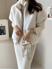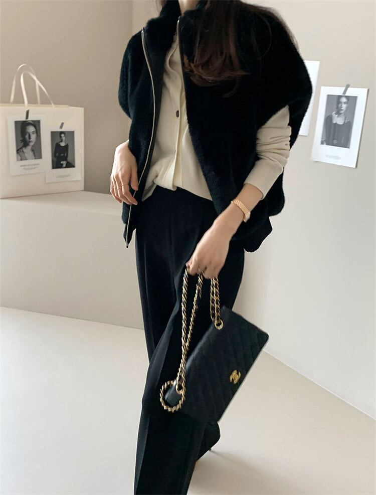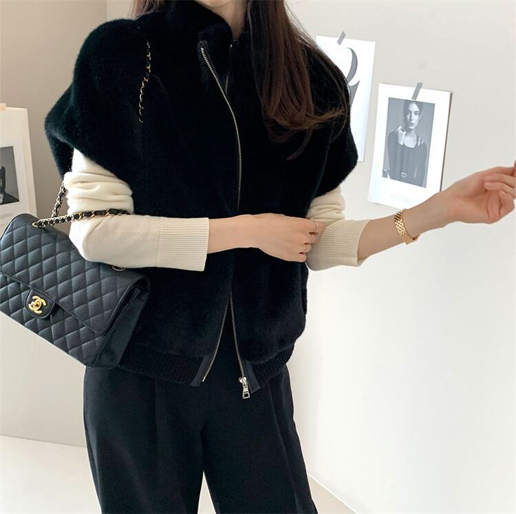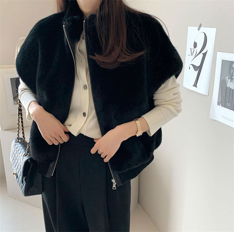 大人の魅力高まる 2025秋冬 詰め襟 ミンクの毛に似せる ゆったりする ジッパー式 ファー毛皮 ベスト | Fashionshop Kuuu571 |StylishでおしゃれなFashion好きな人達へ