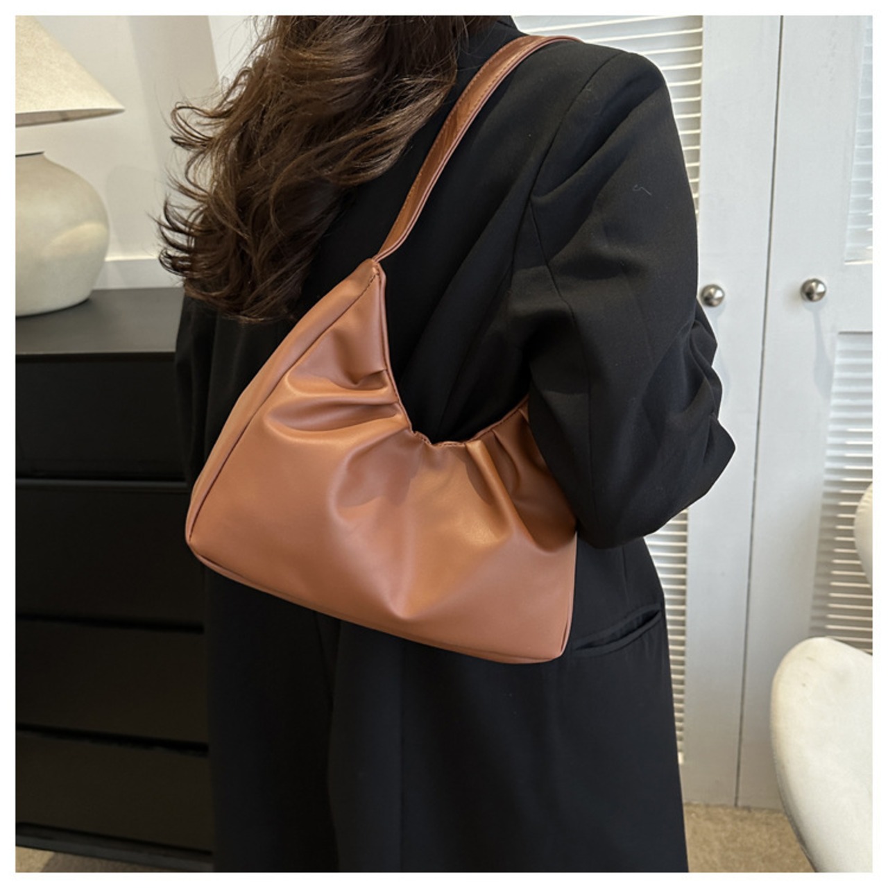 ・シンプルなデザインでデイリーに使えるワンハンドルハンドバッグ。