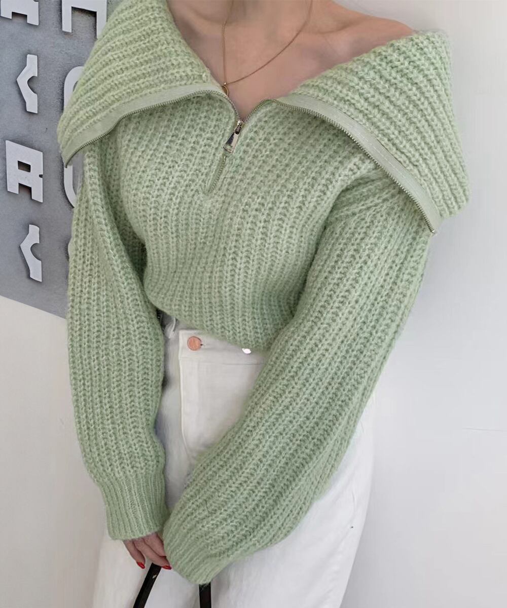 ジップを全て閉じてハイネックにしたり、ジップを開けてレイヤードコーデを楽しんだりと、さまざまなスタイリングが可能。