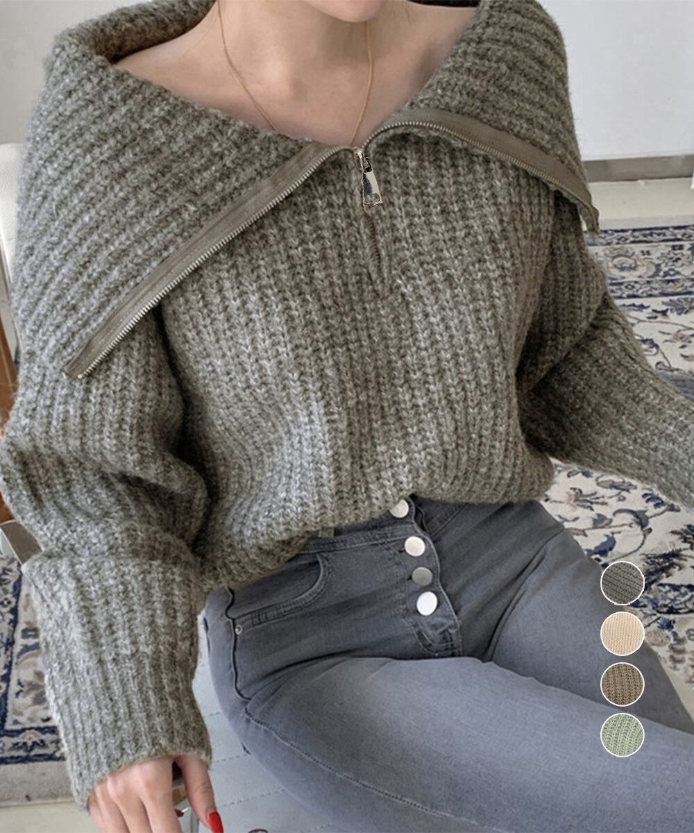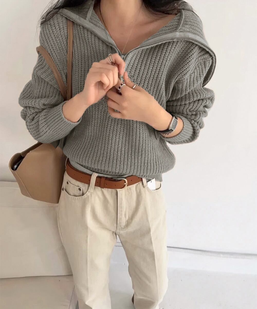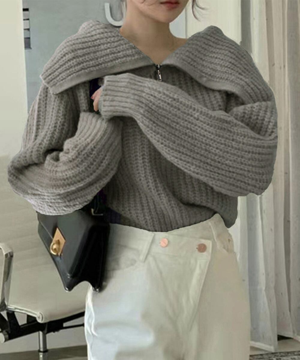 大人カジュアルな旬顔ハーフジップニットプルオーバー。