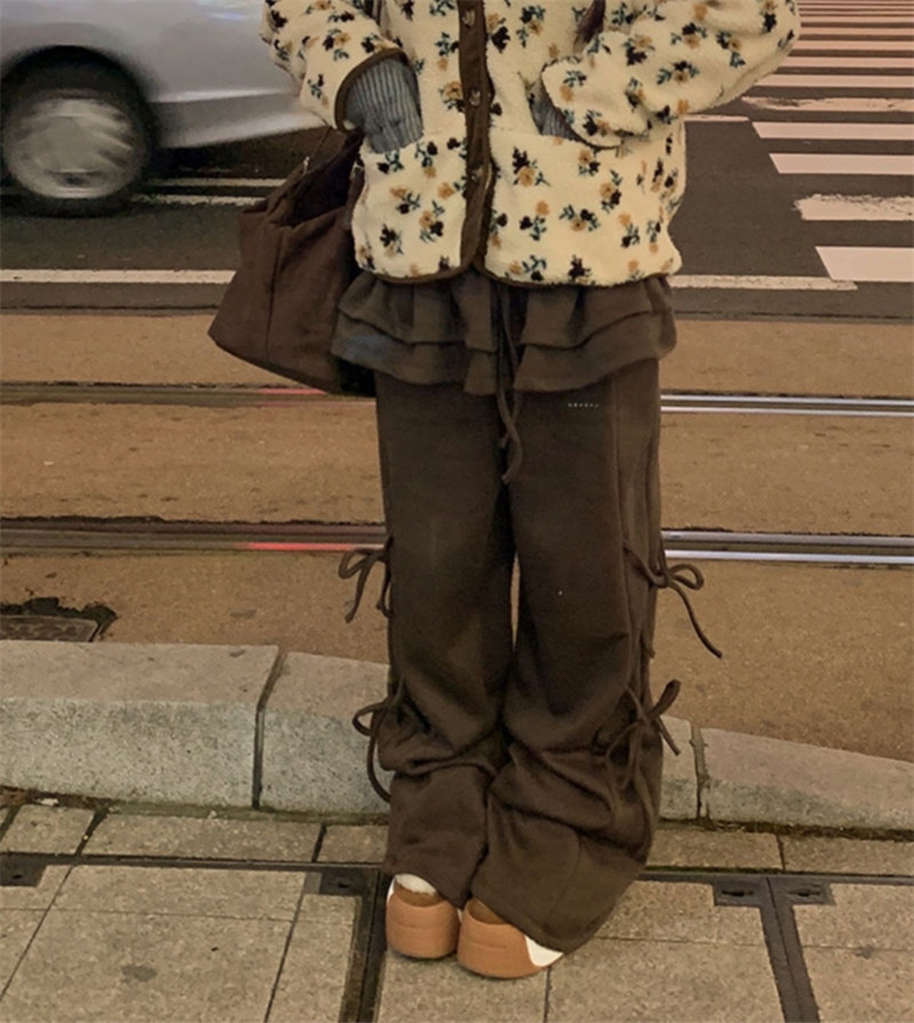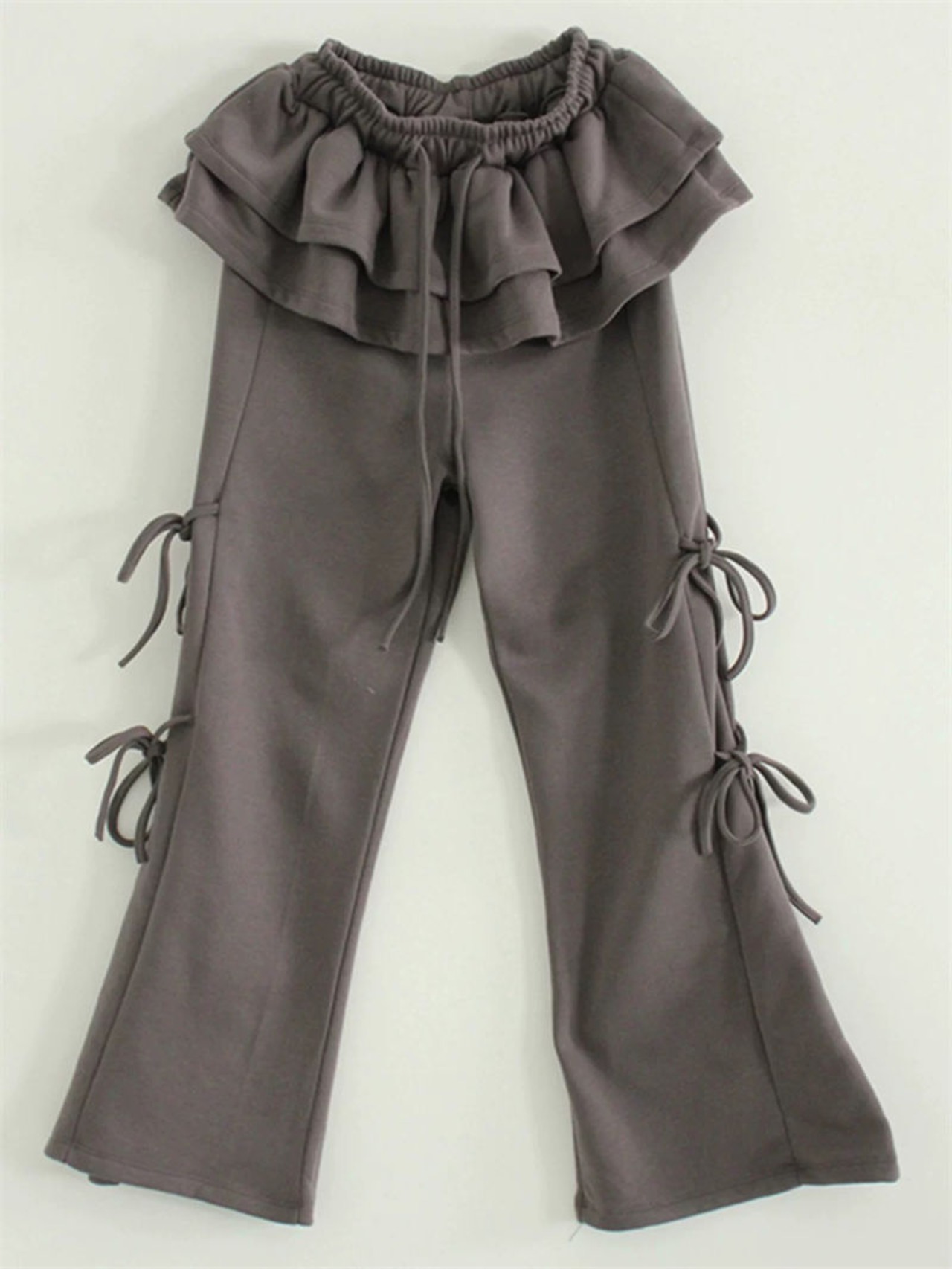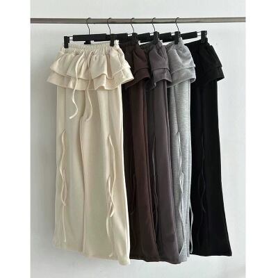 秋冬新作!このカジュアルリボンロングパンツは、シンプルでありながらもおしゃれなデザインが特徴です。リボンのアクセントが、どんなスタイルにも華やかさをプラスしてくれるアイテムです!