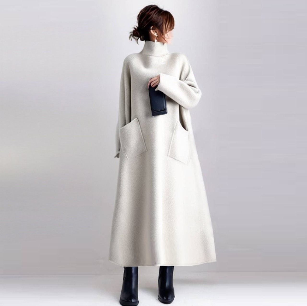 秋冬新作!トレンドを抑えたレディースタートルネックAラインワンピースが登場!ゆったりとしたシルエットで、着る人をすっきりと見せるデザインが魅力の一枚です。このワンピースは、自然なAラインを描きながら、タートルネックが顔周りを華やかに演出。シンプルながらもおしゃれな印象を与え、様々なシーンにぴったりです!