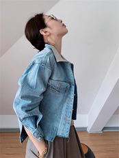 春秋新作!独特なシルエットに魅了されるデニムジャケットが登場!イレギュラーなデザインが印象的で、短いスタイルがスタイリッシュな雰囲気を演出します。このジャケットは、カジュアル感を大切にしつつも、特別な個性を引き立てる一着です!