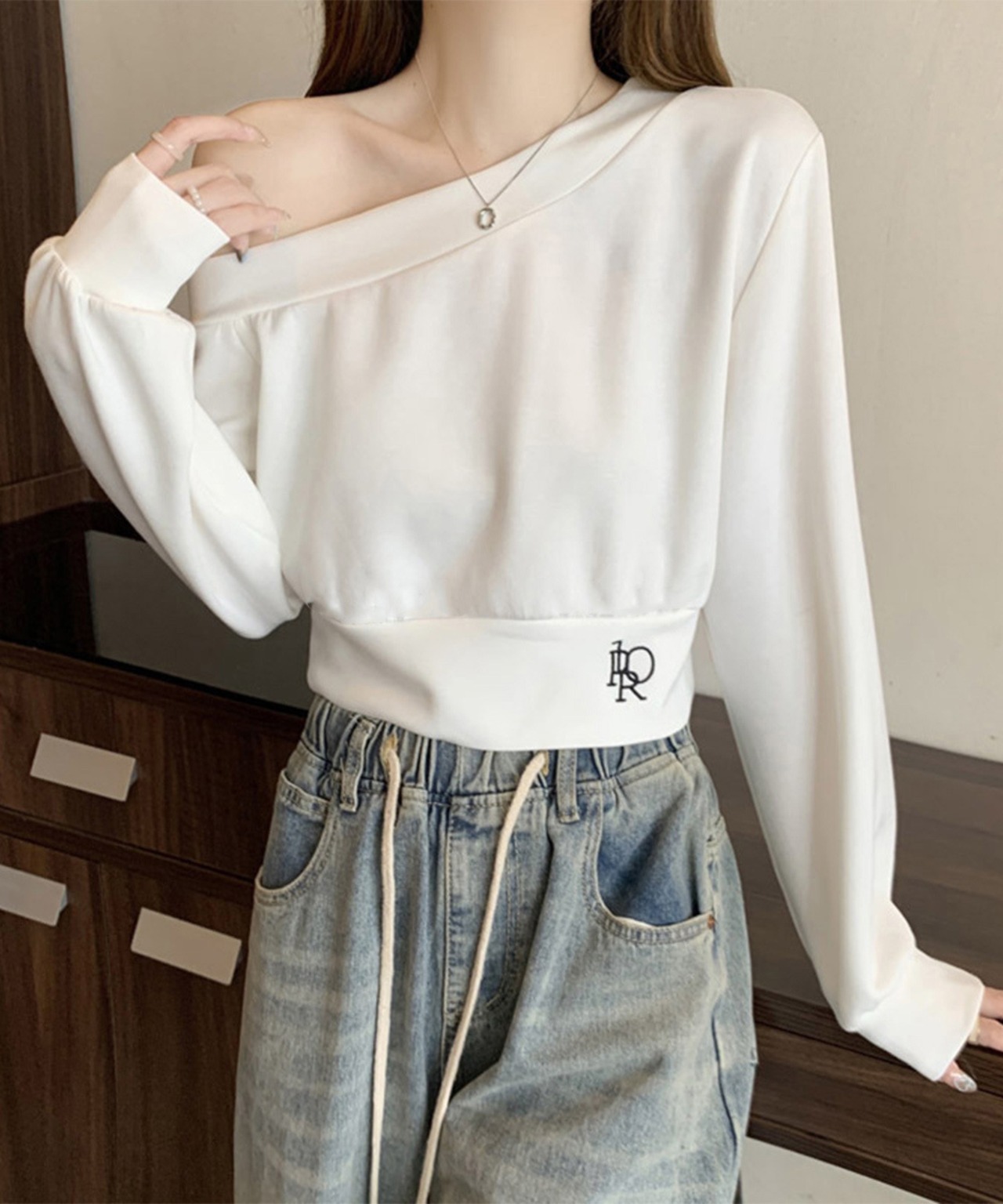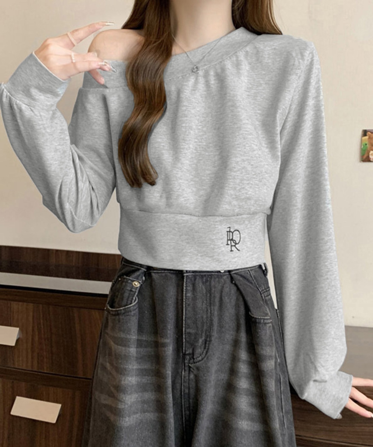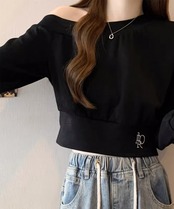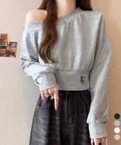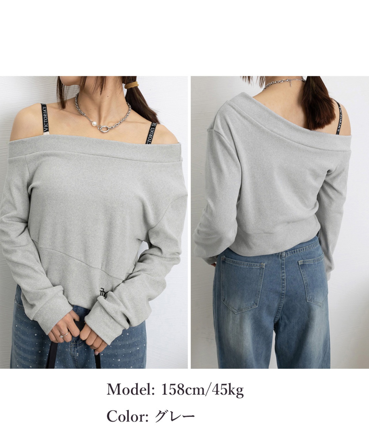 オフショルダーでセクシーな肌見せが魅力のライトスウェットトップス